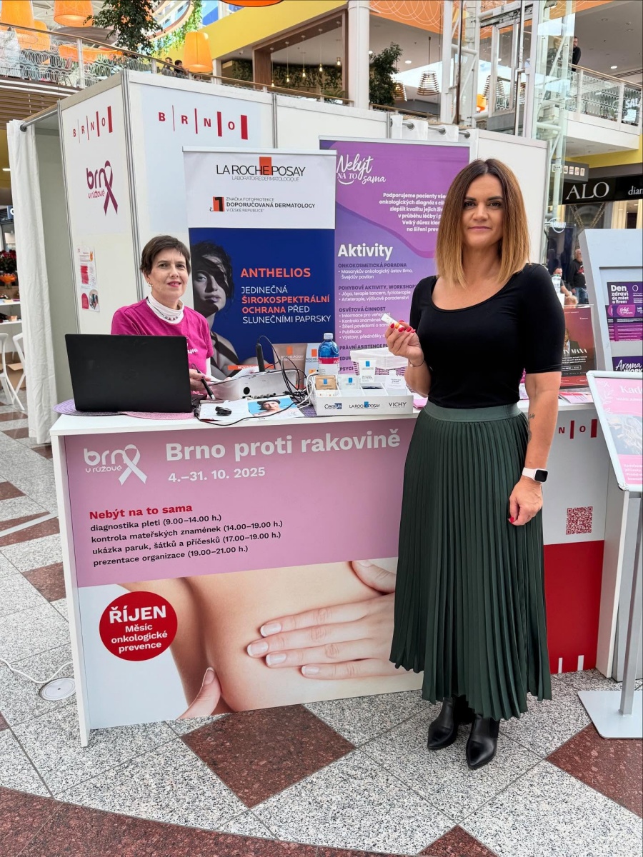Během celého dne jste si mohli na našem stanovišti užít bohatý program – dopoledne probíhala diagnostika pleti, odpoledne pak bezplatná kontrola znamének 🩺.