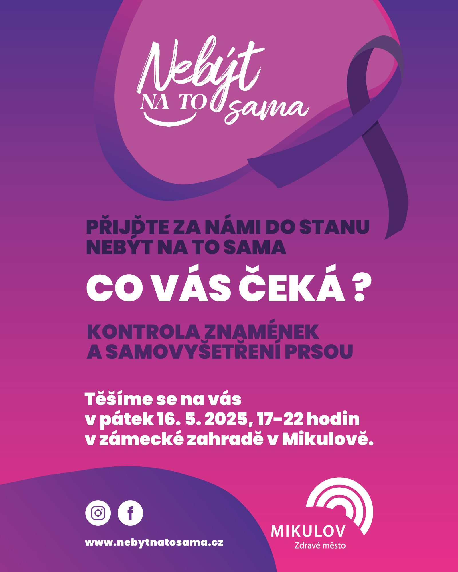 ☀️ Součástí doprovodného programu na Slavnosti města Mikulov bude stát v zámecké zahradě stan NEBÝT NA TO SAMA, kde si můžete nechat zkontrolovat mateřská znaménka.